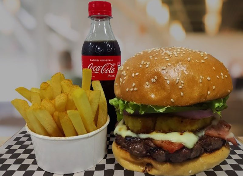 La mejor combinación de la Jackassita, con panecito brioche, 180 gramos de carnesita de res o cerdo 100% artesanal, viene con rodaja de piña al grill, queso mozzarella, tocinetas, lechuga, tomate, cebolla cruda o grille también como la piña, y la poderosas salsaaas jackass!!!! Un hit + Papitass