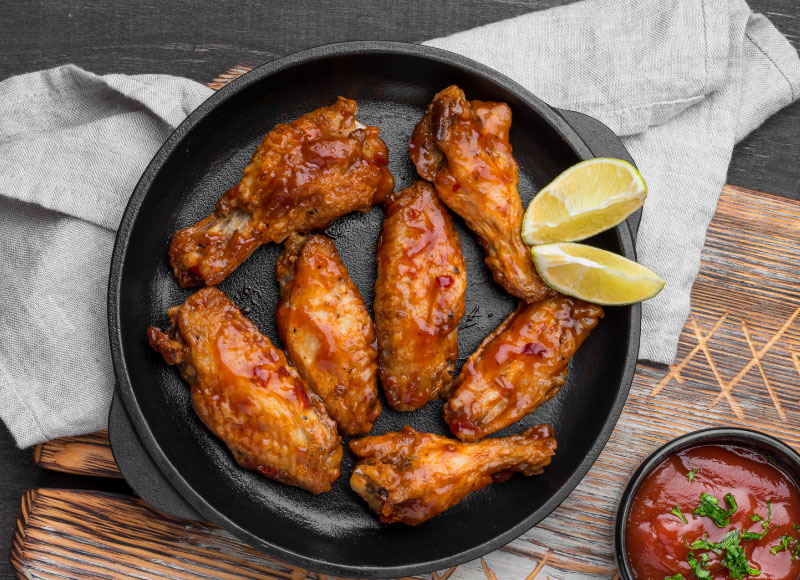 8 piezas de alitass bañadas en limon con un toque de pimienta o bbq, acompañadas de papitass y vegetales al mejor estilo jackasss